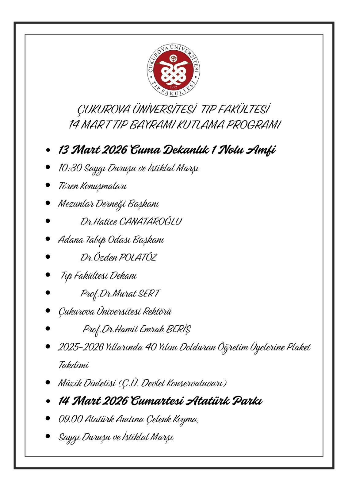14 Mart Tıp Bayramı Kutlama Etkinlikleri
